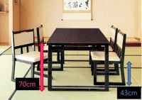 椅子の座面までの高さは43cmになりますので、テーブルの高さは70cmのものをお選び下さい。